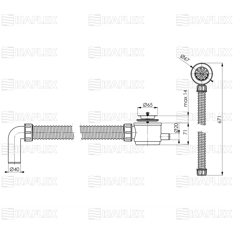 • Visina vodenog zaptivača je 28mm